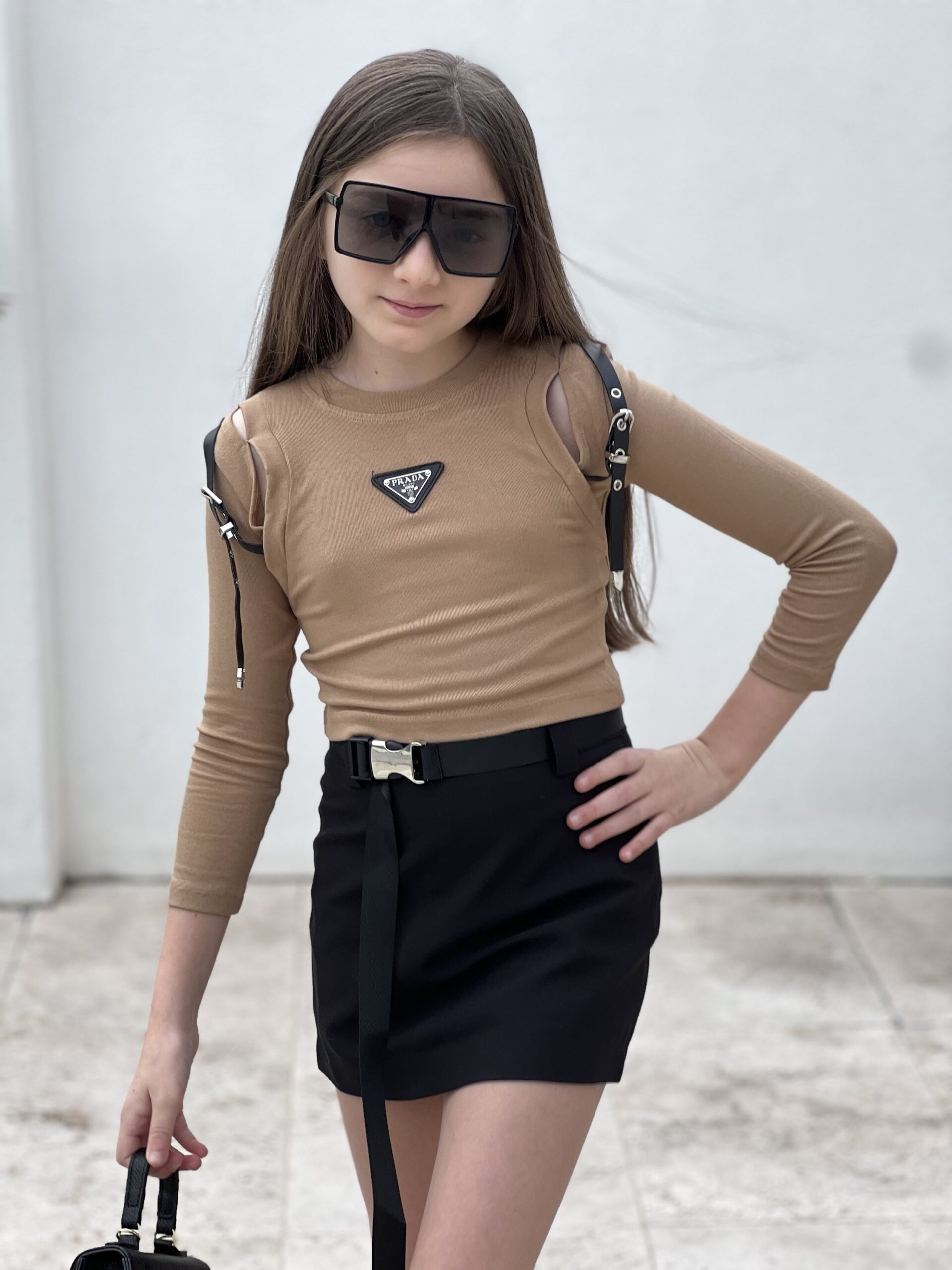 Model is 7 years old wearing size 7